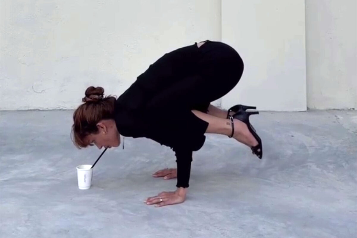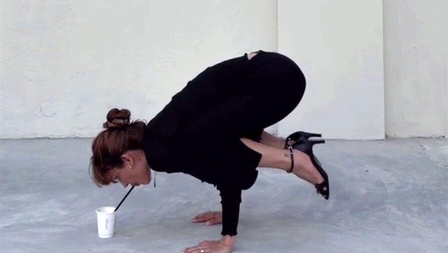 Блогерша Дина Саева выпила воду в стойке на руках. Знаменитость опубликовала видео в Instagram (владелец компания Meta признана в России экстремистской и запрещена).