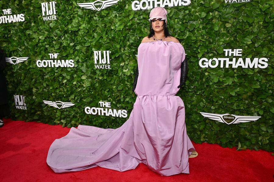Рианна и ее возлюбленный A$AP Rocky стали гостями церемонии вручения премии Gotham Film Awards, которая прошла 1 декабря в Нью-Йорке. Певица выбрала для закрытого мероприятия розовое макси-платье со шлейфом, головной убор из перьев в тон, черные кожаные перчатки и колье. Поп-исполнительнице уложили волосы и сделали макияж с темными тенями, румянами и коричневой помадой.