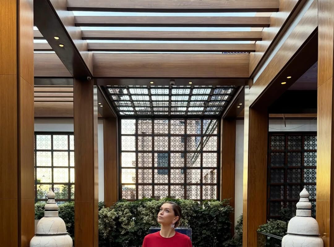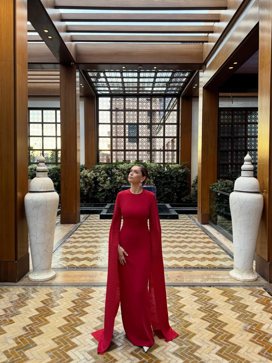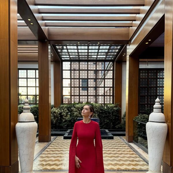 43-летняя Вера Брежнева показала фигуру в красном облегающем платье с длинными рукавами. Волосы ей уложили в высокий пучок и сделали вечерний макияж.