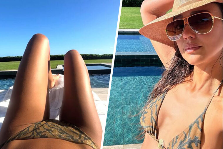 44-летняя Джессика Альба показала фигуру в пестром бикини. Волосы она распустила и отказалась от макияжа.