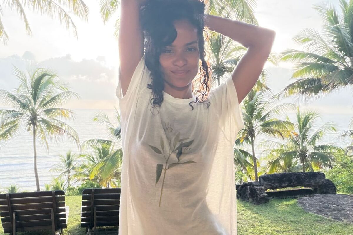 29-летняя Нара Баптиста предстала перед камерой в белой футболке и трусах в тон. При этом модель не стала надевать бюстгальтер. Манекенщица позировала с собранными волосами с прядями у лица и без макияжа. Знаменитость стояла на фоне пальм и океана.