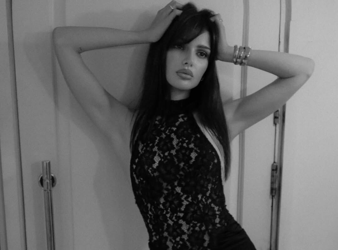 Блогерша Дина Саева в кружевном платье снялась с темными волосами
