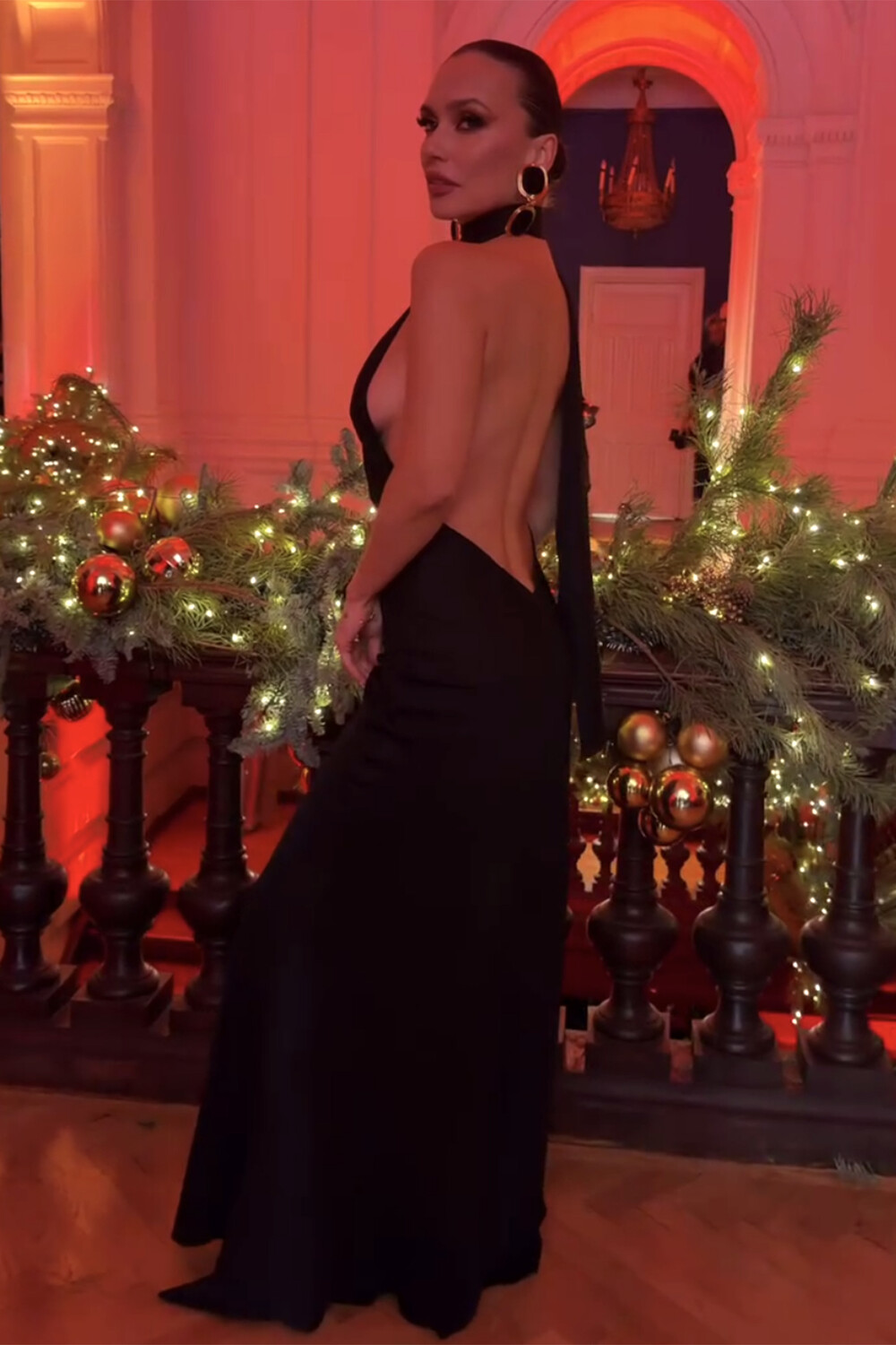 40-летняя Ольга Серябкина позировала в черном платье с голой спиной. Волосы ей уложили в низкий пучок и сделали вечерний макияж.