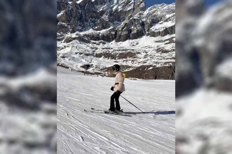 Кети Топурия в облегающем костюме снялась на горнолыжном склоне