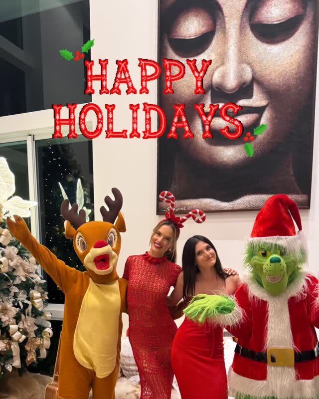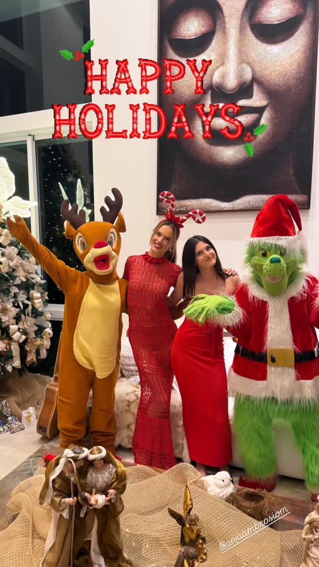 Модель Алессандра Амбросио в платье из кружева встретила Рождество