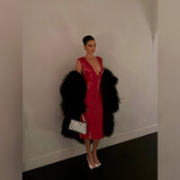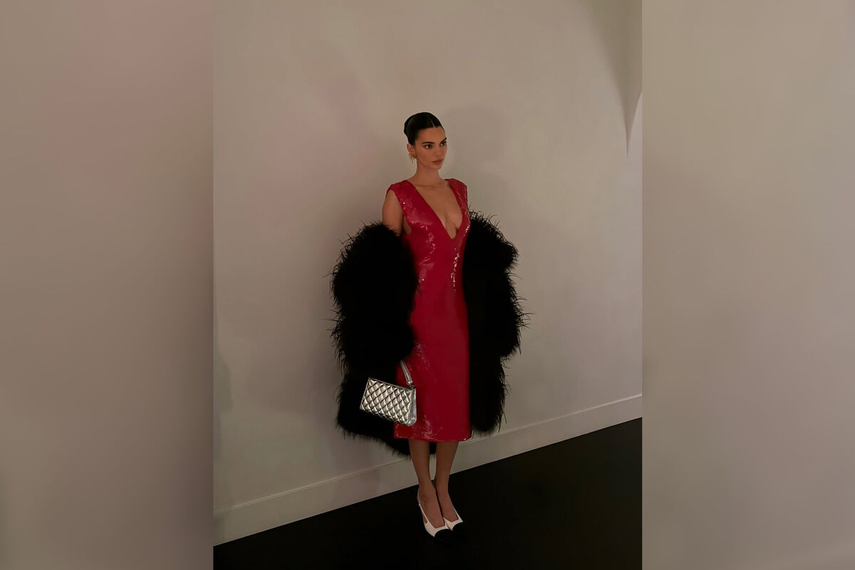 Кендалл Дженнер показала образ, который выбрала для католического Рождества. Модель предстала перед камерой в красном платье-миди с глубоким декольте, украшенном пайетками. Манекенщица добавила к наряду черную пушистую шубу, серебристую сумку, белые туфли с черным мысом и золотые массивные серьги. Звезда реалити-шоу собрала волосы в гладкий высокий пучок и сделала вечерний макияж.