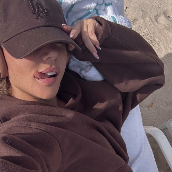Анна Седокова предстала перед камерой в леопардовом слитном купальнике, который дополнила шоколадным худи и кепкой в тон. Поп-исполнительница убрала волосы под головной убор. Певица в наушниках лежала в шезлонге.