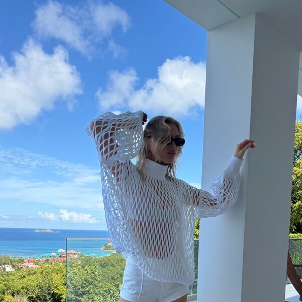 Модель Эльза Хоск снялась в прозрачном топе и шортах на Сан-Барте