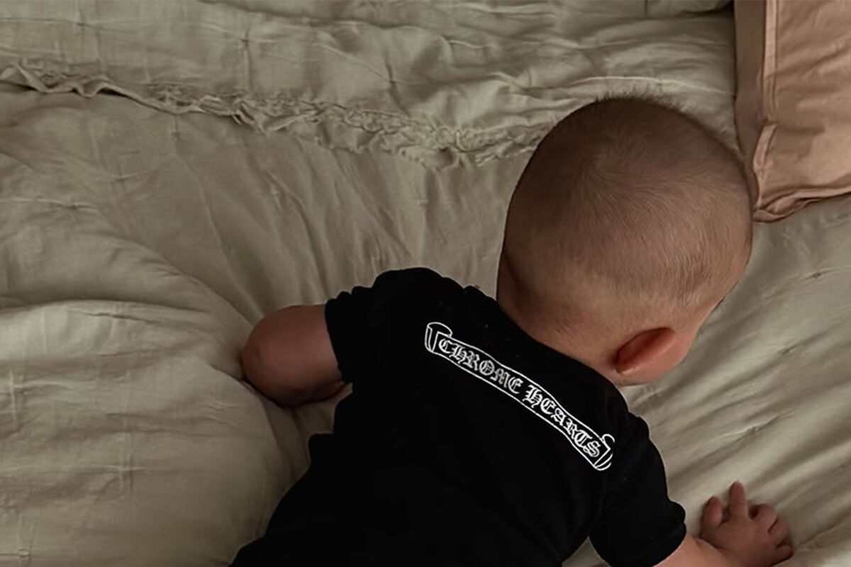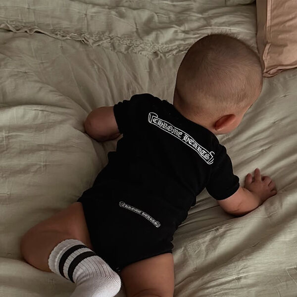 Девочка лежала на животе в черном боди Chrome Hearts и белых носках с полосками. Дочь Тимати и Валентины Ивановой была повернута к камере спиной. Знаменитости пока не показывают лицо ребенка.