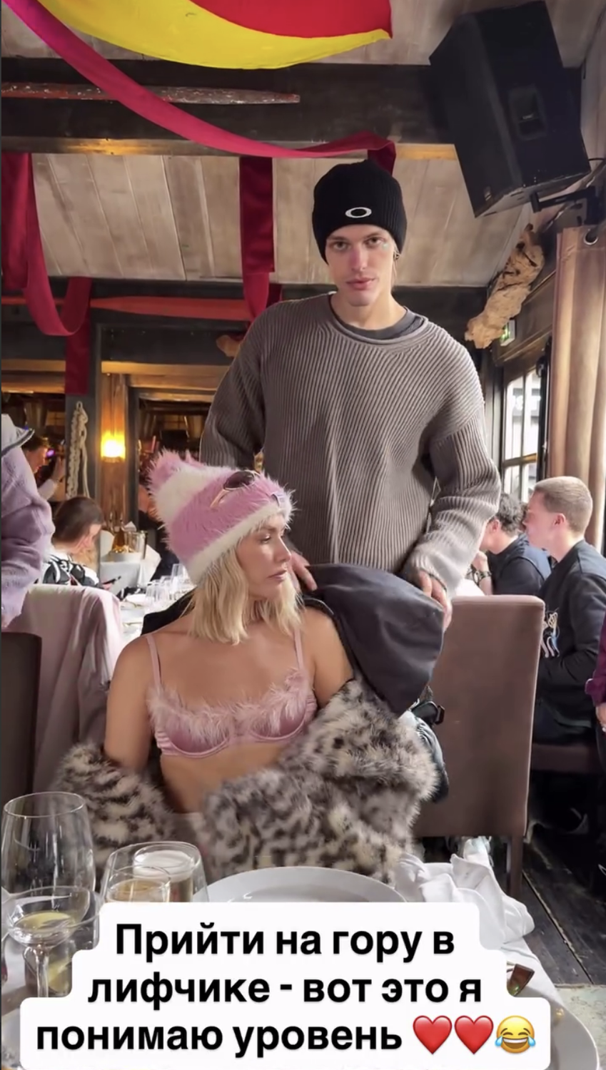 Модель и телеведущая вместе отдыхают в Куршевеле. В новом ролике Ксения Собчак и Елена Перминова с возлюбленным Тарасом Романовым находились в ресторане. Манекенщица сидела за столом в розовом пушистом бюстгальтере, который дополнила леопардовой шубой, шапкой и очками. Бывшая жена Александра Лебедева вышла на публику с уложенными распущенными волосами и макияжем в нюдовых тонах.
