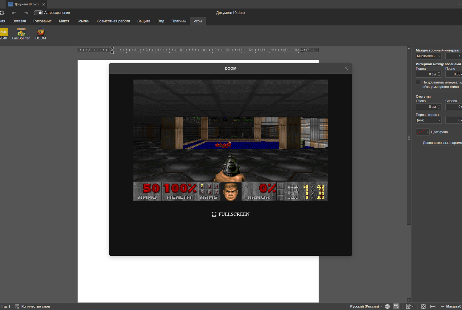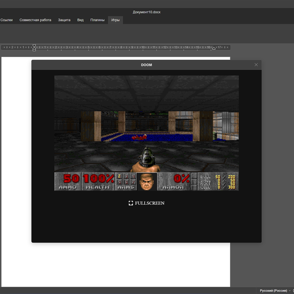 В российском офисном пакете «Р7 Офис» запустили культовый шутер DOOM (1993). Автором проекта стал специалист службы поддержки компании Михаил Орешкин, продемонстрировавший гибкость архитектуры отечественного ПО, о чем «Газете.Ru» рассказали разработчики «Р7 Офис».