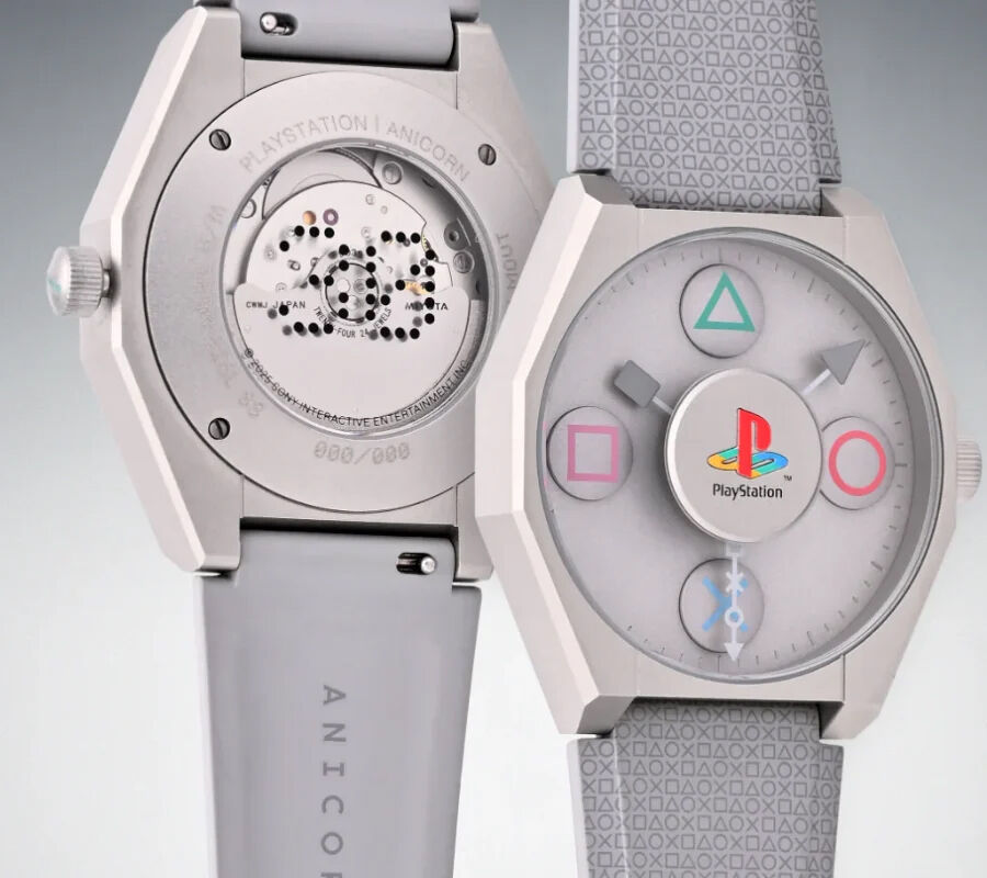 Дизайн аксессуара полностью стилизован под первую PlayStation 1995 года. Корпус из нержавеющей стали выполнен в характерном сером оттенке, а метки на циферблате заменены символами кнопок контроллера — треугольником, кругом, крестиком и квадратом. Стрелки имитируют клавиши Start и Select, а ремешок украшен цветными обозначениями джойстика.