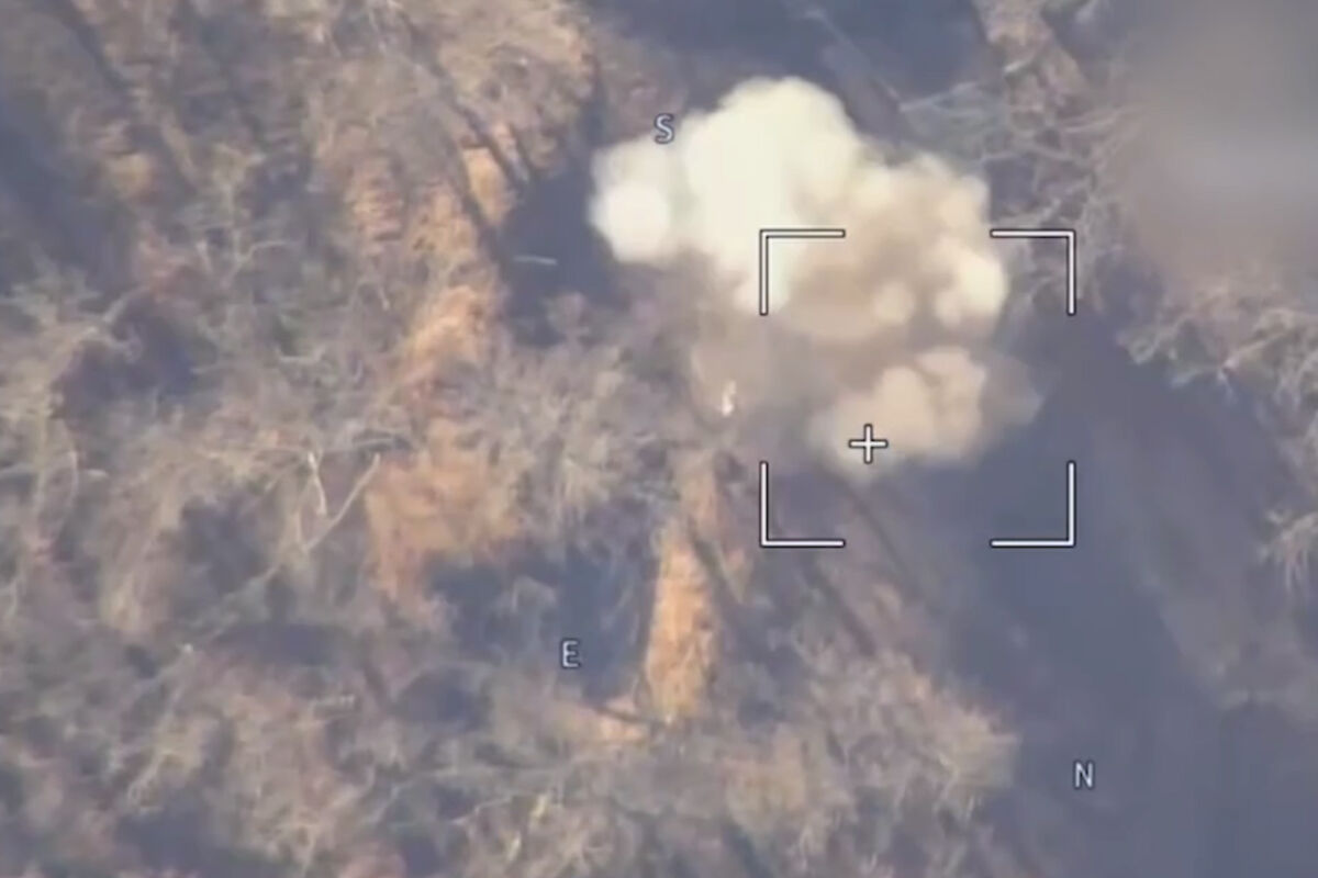 Ведомство также опубликовало кадры уничтожения, на которых видно попадание боеприпаса по цели.