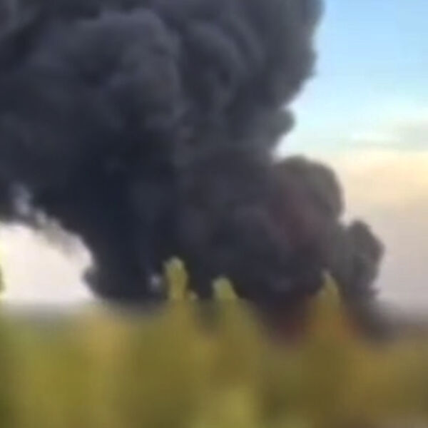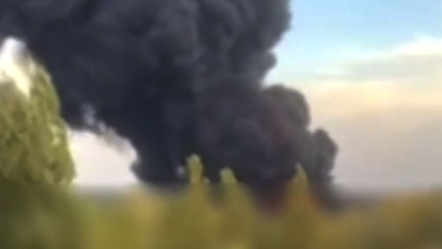 Украинский город Чернигов заволокло черным дымом после взрывов. Видео публикует местный Telegram-канал «Труха».