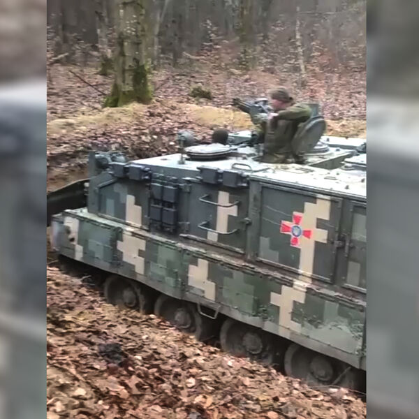 Публикация дополнена видеозаписью, на которой запечатлена техника украинских войск. На кадрах видно, как машина роет яму при помощи отвала для самоокапывания.