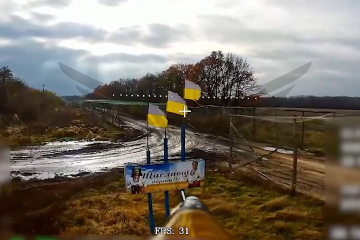 Украинские флаги были размещены в селе Писаревка. Судя по опубликованному видео, оператор БПЛА пролетал над одной из дорог в населенном пункте и заметил флаги на щите с пожеланием хорошей дороги. После этого военный использовал дрон-камикадзе, чтобы уничтожить три флага Украины. На записи можно увидеть, как они взорвались.