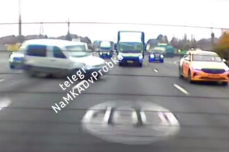Военный «КамАЗ» протаранил Kia на развязке МКАД и попал на видео