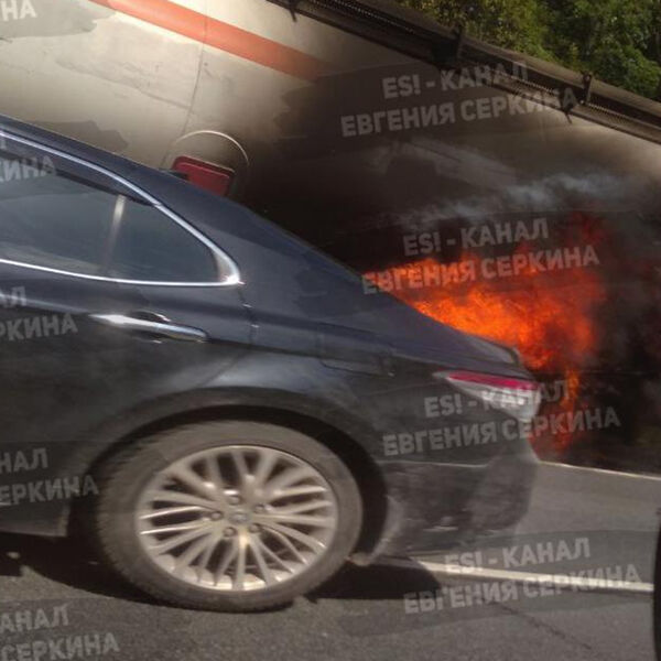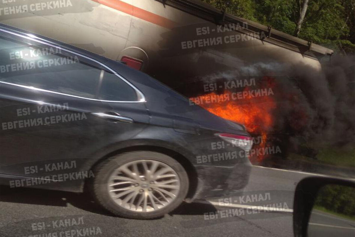 На опубликованном фото видно, что огонь охватил нижнюю часть машины в районе цистерны.