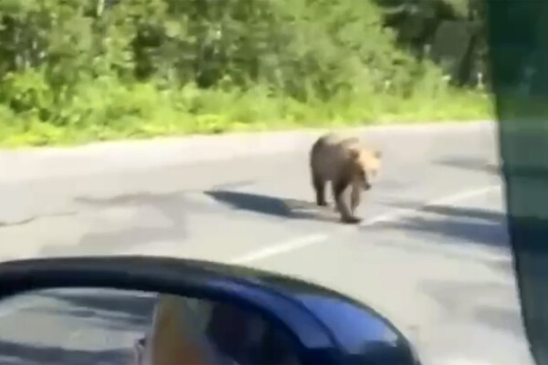 Очевидица запечатлела инцидент на видео. На кадрах видно, как медведь ходит по проезжей части. При этом, когда машина останавливается, животное подходит и заглядывает в транспорт.