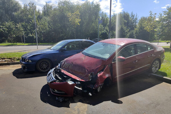 Нарушитель оставил транспорт экстренных служб между двух припаркованных автомобилей и заехал на бордюр, поцарапав при этом чужую машину.