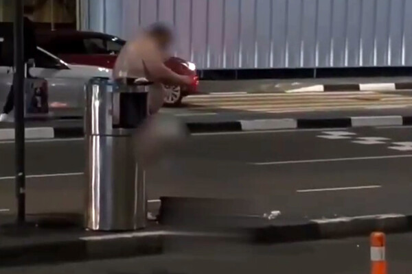 Очевидцы запечатлели инцидент на видео. На кадрах видно, как полностью голый мужчина стоит на проезжей части, при этом возле него проезжают автомобили.