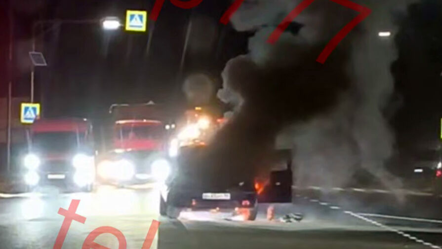 В Богородском городском округе Московской области автомобиль загорелся на проезжей части дороги. Видеозапись инцидента опубликовал Telegram-канал «ДТП и ЧП Москва и МО».