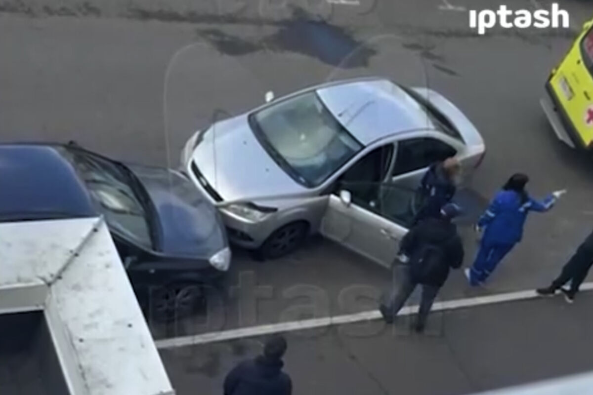 На опубликованных в сети кадрах видно, как медики стоят возле серого легковой автомобиля.