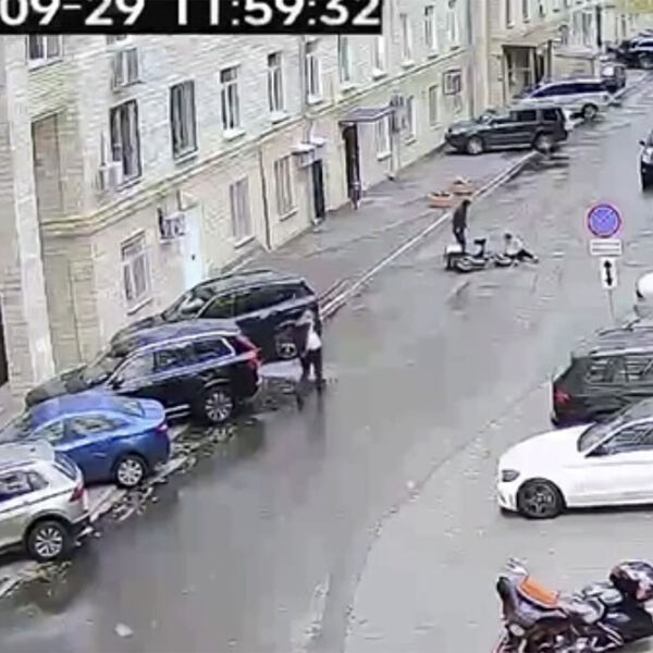 На кадрах видно, что пожилая женщина двигалась по проезжей части в узком проезде возле жилого дома. Курьер на электровелосипеде врезался в нее со спины, когда женщина сместилась левее. Пострадавшая упала на асфальт. Курьер также упал, а затем встал на ноги и поднял свой велосипед.