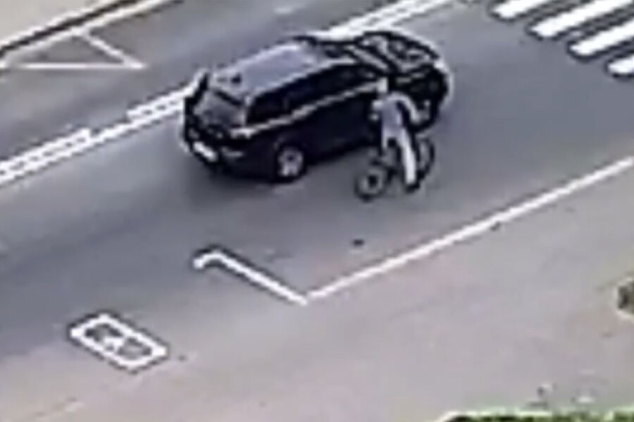 Уличная камера запечатлела инцидент. На кадрах видно, как в момент движения автомобилист и велосипедист начинают ругаться, затем мужчины оставляются свои транспорты и продолжают конфликт сначала на проезжей части, а после – на тротуаре.