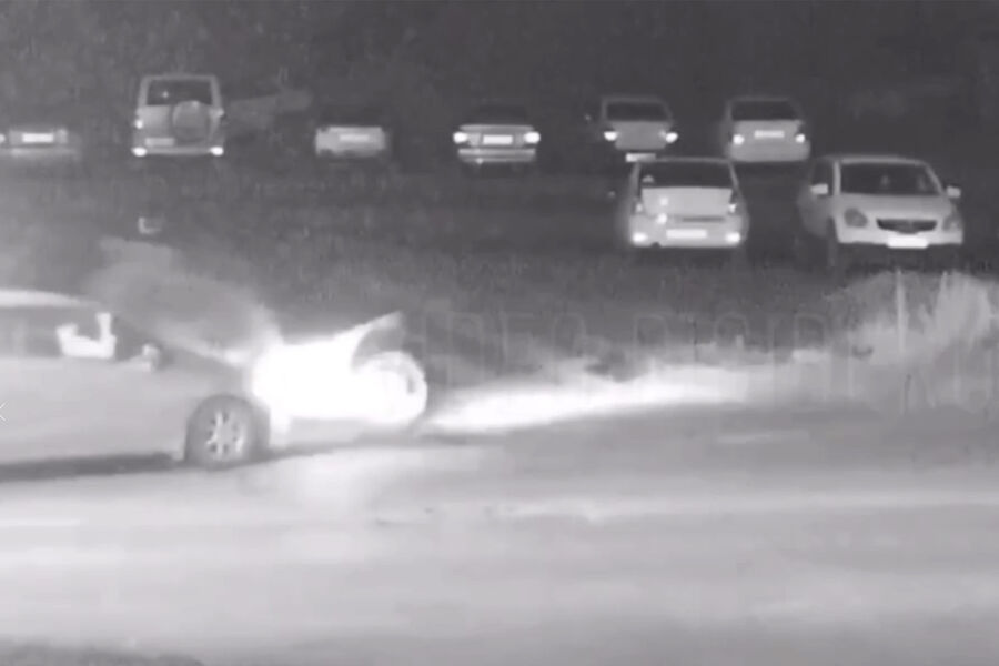 В Алтайском крае на видео попало, как байкер на скорости влетел в авто
