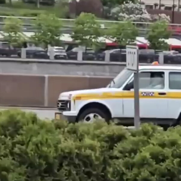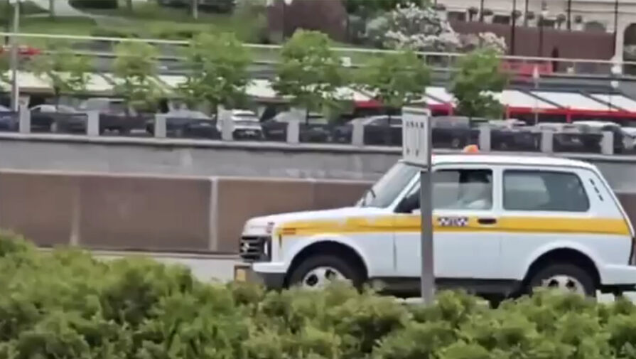 В Москве сняли на видео внедорожник Lada Niva Legend в раскраске такси. Кадры опубликовал Telegram-канал «Что там, в Москве».