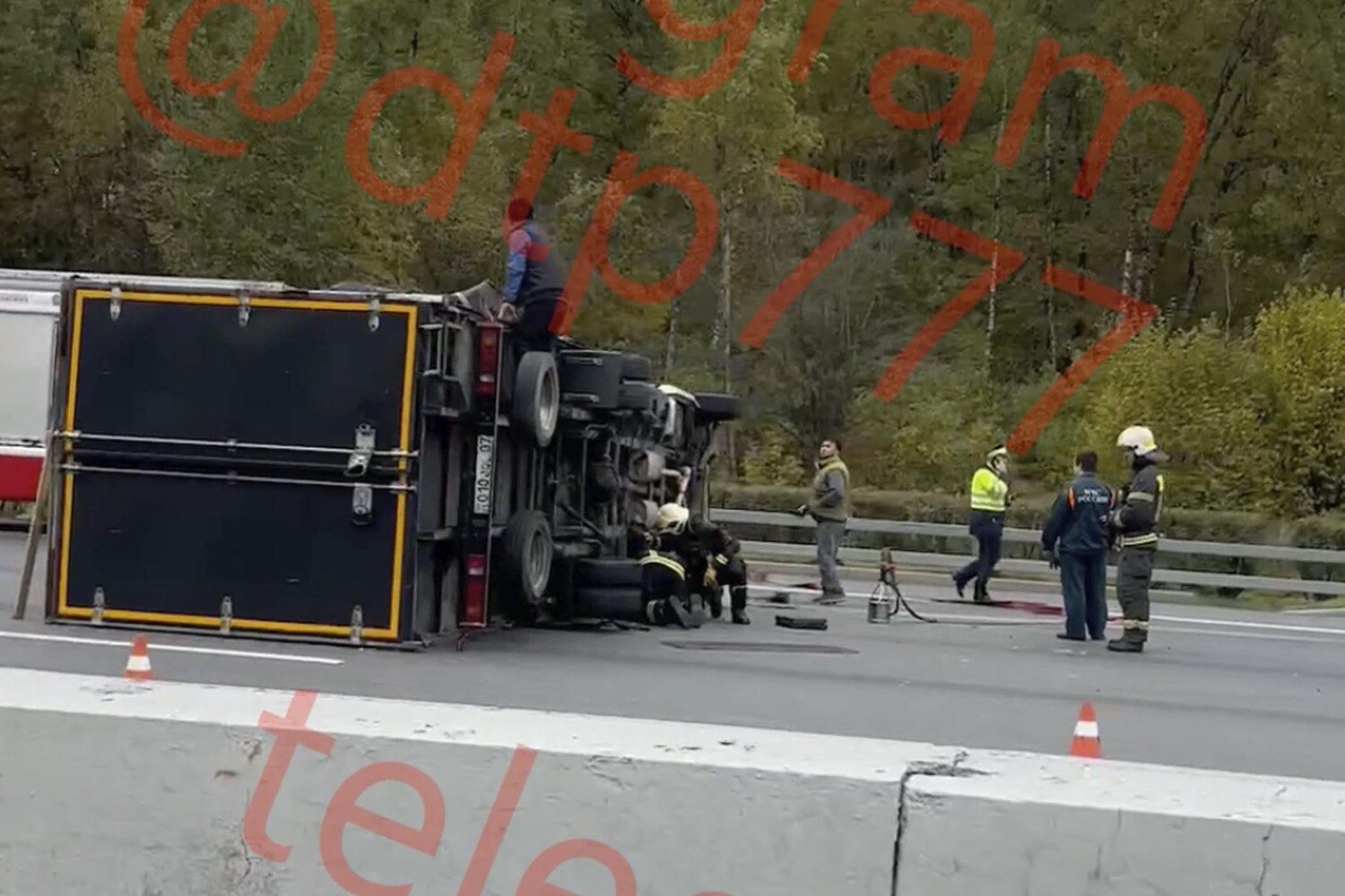 «На внешней стороне 80 км МКАД (перед съездом №79) произошло столкновение нескольких автомобилей с последующим опрокидыванием одного из них. На месте работают оперативные службы города» — сообщает «Дептранс. Оперативно».