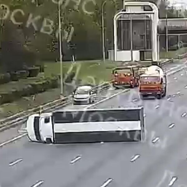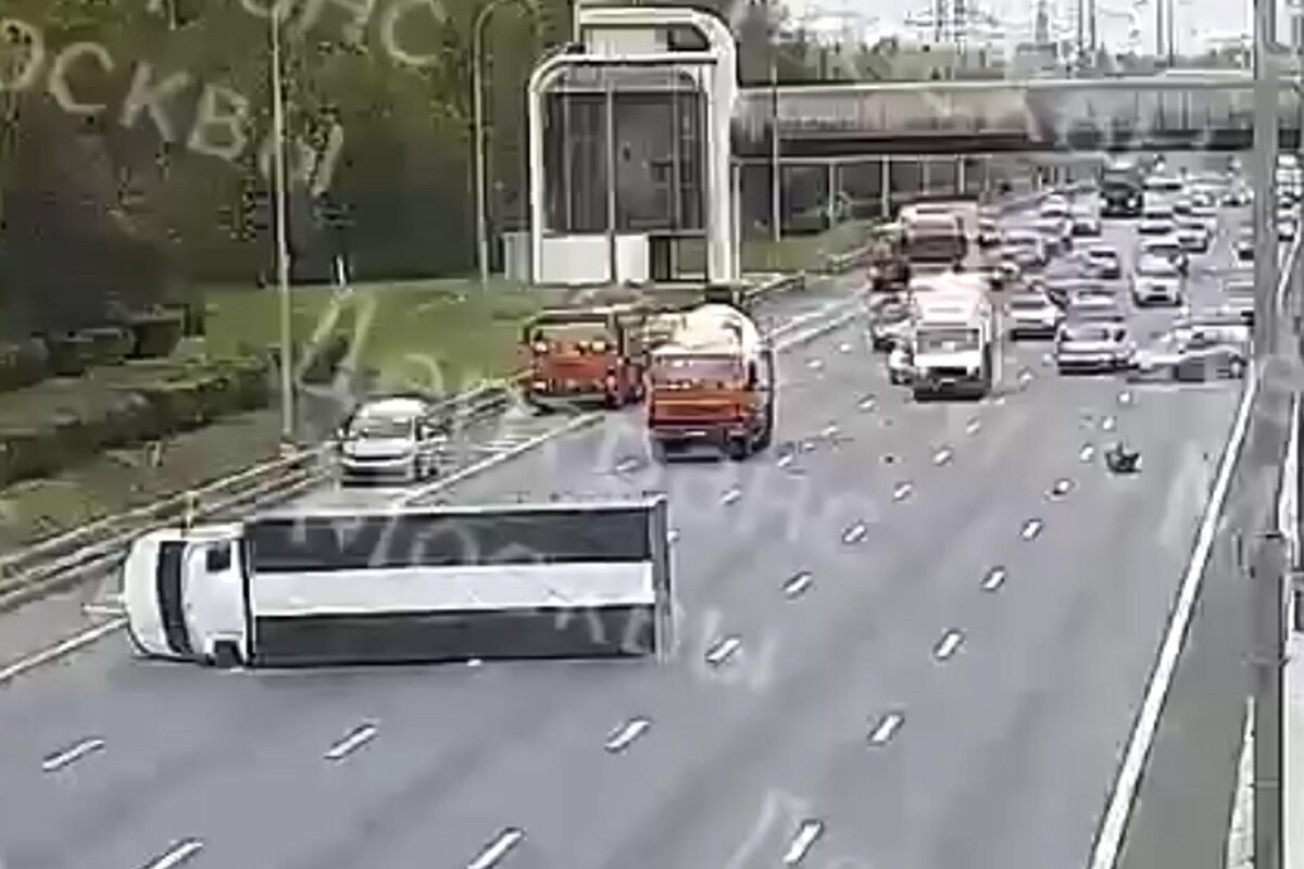 Судя по видео, легковушка пыталась перестроится из-за коммунальной машины, но не пропустила автобетоносмеситель, который ее ударил. После этого легковая машина пересекла ряд и врезалась в грузовик, который завалился на бок и проскользил по дороге несколько десятков метров. Легковушку отбросило в крайний левый ряд. О пострадавших не сообщается.