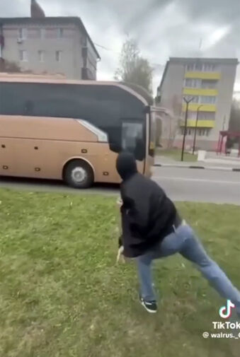Судя по кадрам, группа несовершеннолетних закидала автобус камнями. После этого подростки скрылись.