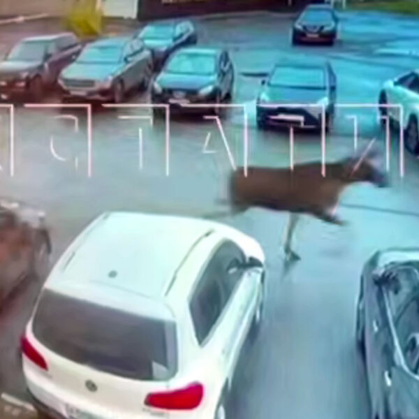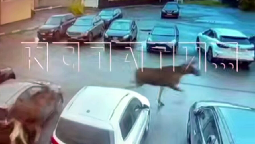 В Нижнем Новгороде на видео попало, как испуганные лоси пробежали по парковке