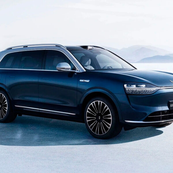 Длина автомобиля составляет 5230 мм, кроссовер оснащен последовательной гибридной установкой. В нее входят бензиновый двигатель мощностью 152 л.с., который используется для подзарядки тяговой батареи емкостью 42 либо 52 кВт.ч. Суммарная мощность — 496 л.с.