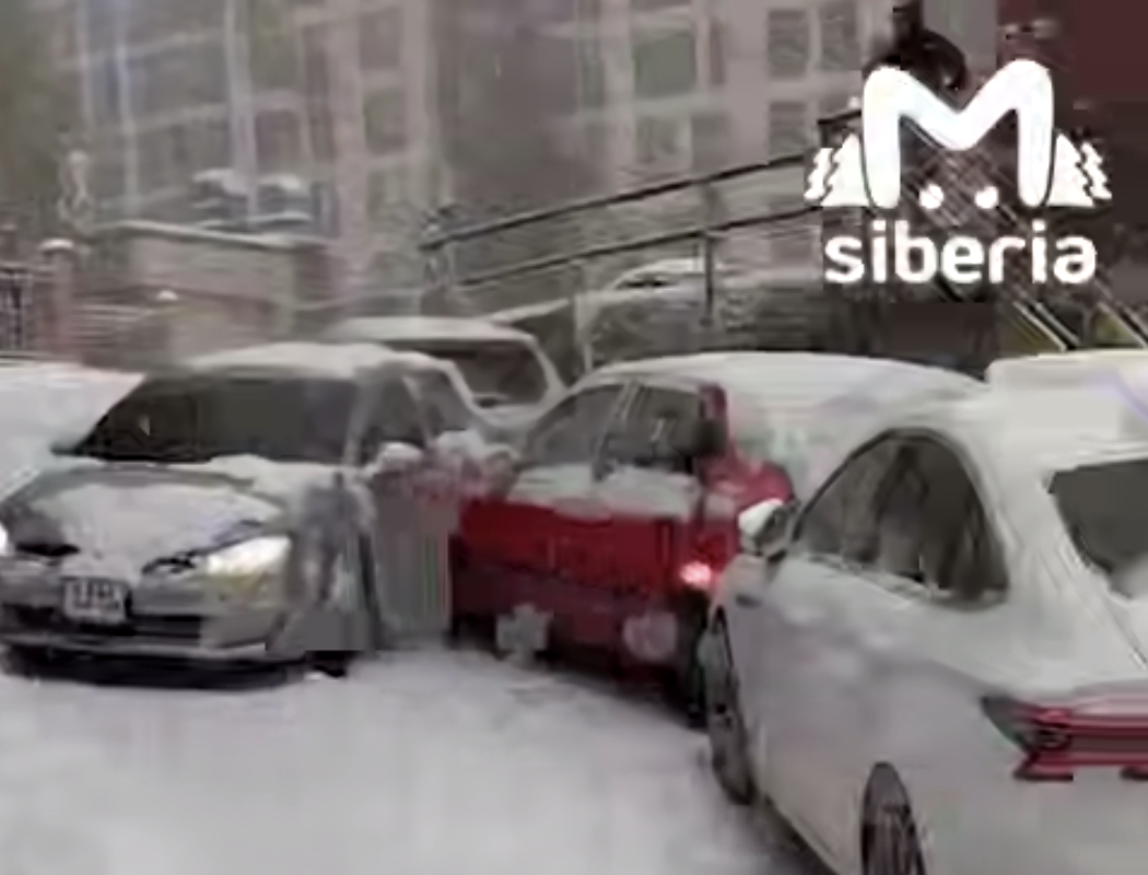 «Паровоз из пяти машин собрался на спуске с улицы Ольги Жилиной в Новосибирске. Не переобулись — не выезжайте», — сообщает канал.