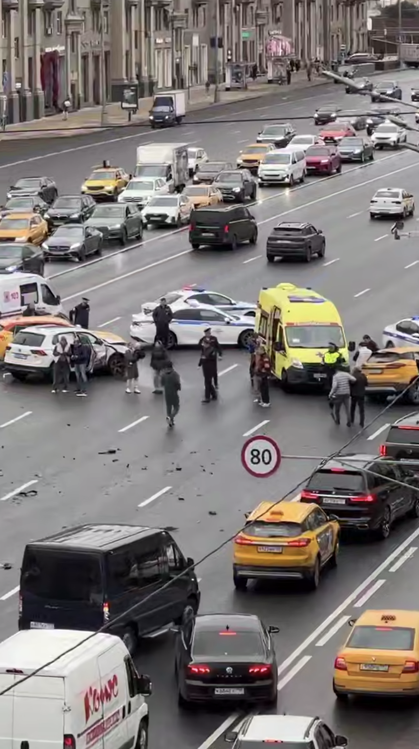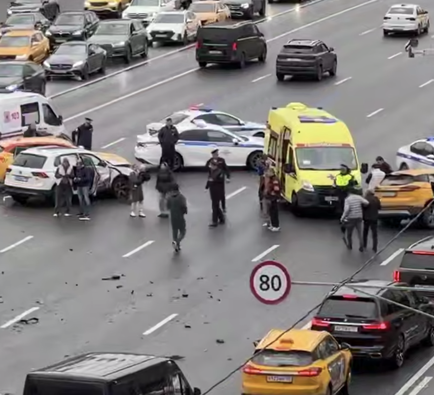 Видео с последствиями массовой аварии на Кутузовском проспекте в Москве опубликовал Telegram-канал «Что там, Москва?»
