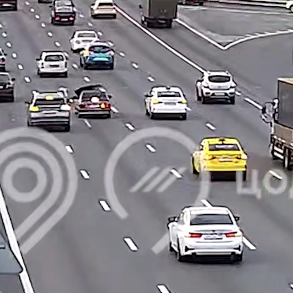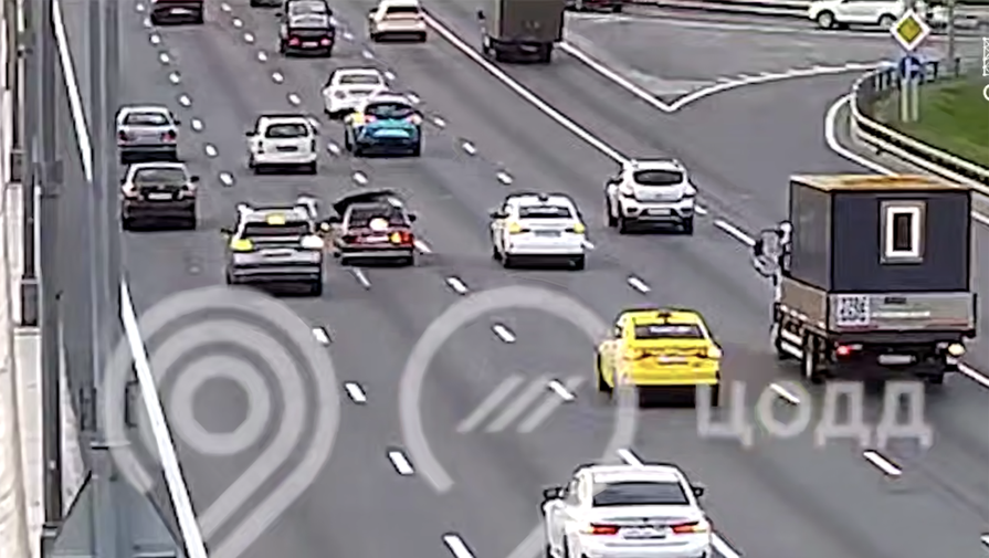 На МКАД на видео попало, как капот закрыл лобовое стекло легковушке