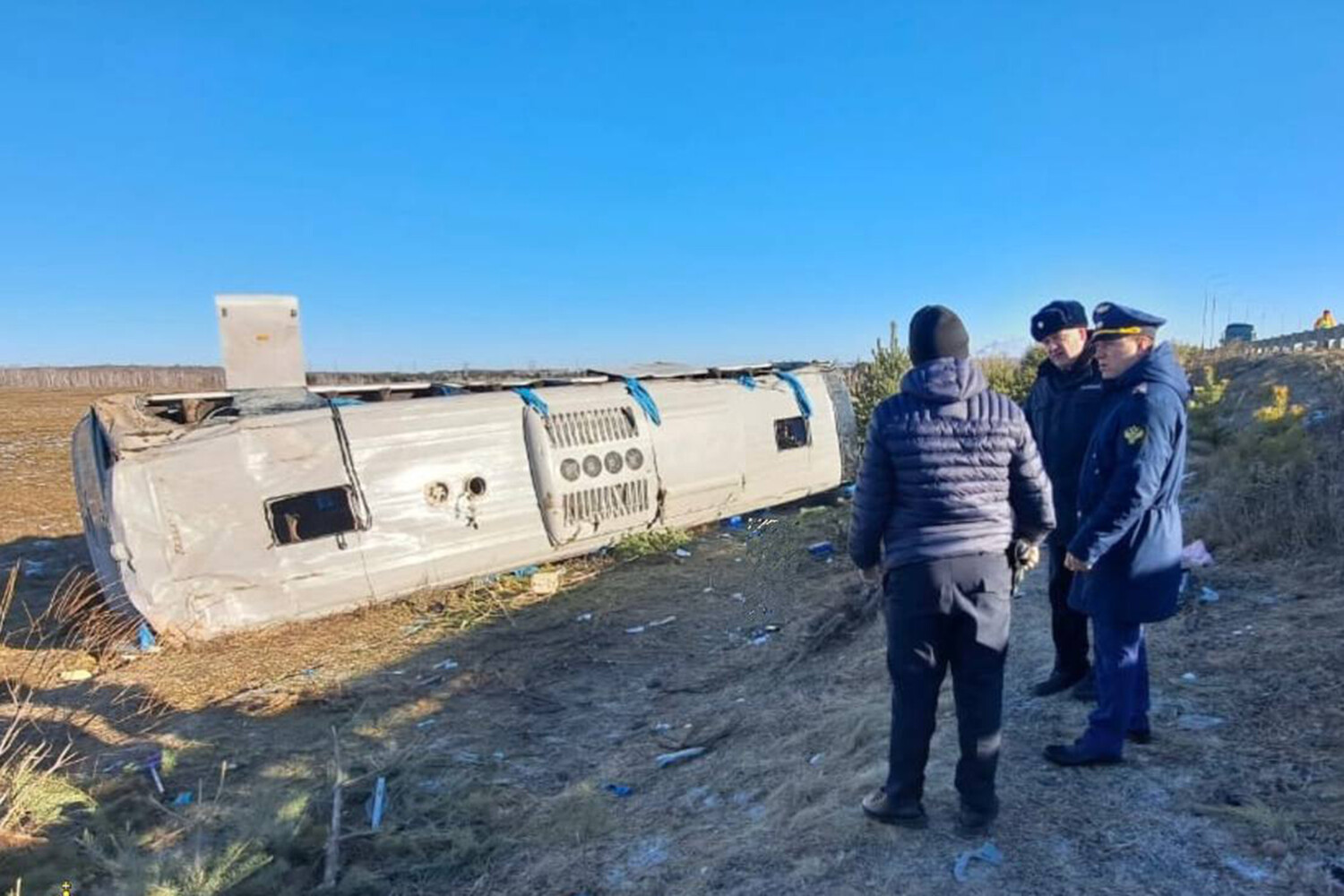 В ведомстве рассказали, что в результате выезда на встречную полосу произошло столкновение автомобиля Toyota Probox и пассажирского автобуса, который перевозил более 50 человек, работающих на амурском газохимическом комплексе. При аварии автобус съехал с проезжей части и перевернулся.