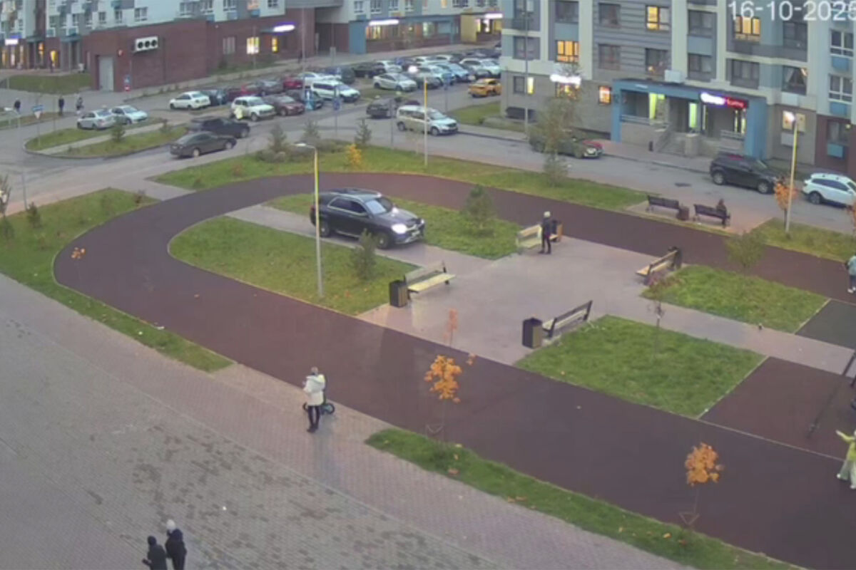 На кадрах виден кроссовер черного цвета, водитель которого остановился при въезде в пешеходную зону. Затем он продолжил движение и проехал по детской площадке, уткнувшись бампером в скамейку. На расстоянии от автомобиля собрались прохожие, включая матерей с маленькими детьми. Они сняли нарушителя на видео. Утверждается, что местные жители неоднократно жаловались на поведение водителя.