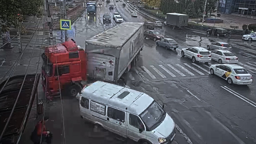Судя по кадрам, фура попыталась объехать маршрутное такси, но большегруз занесло, он ударил Газель, а затем въехал в остановку общественного транспорта.