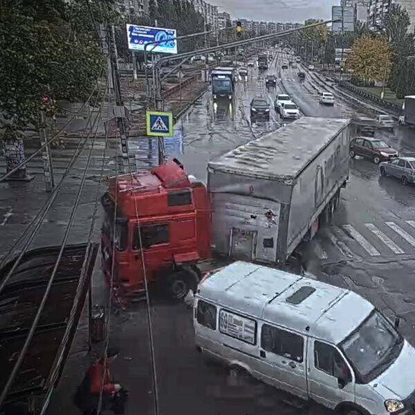 На видео попал момент столкновения фуры с маршруткой с пассажирами в Волгограде