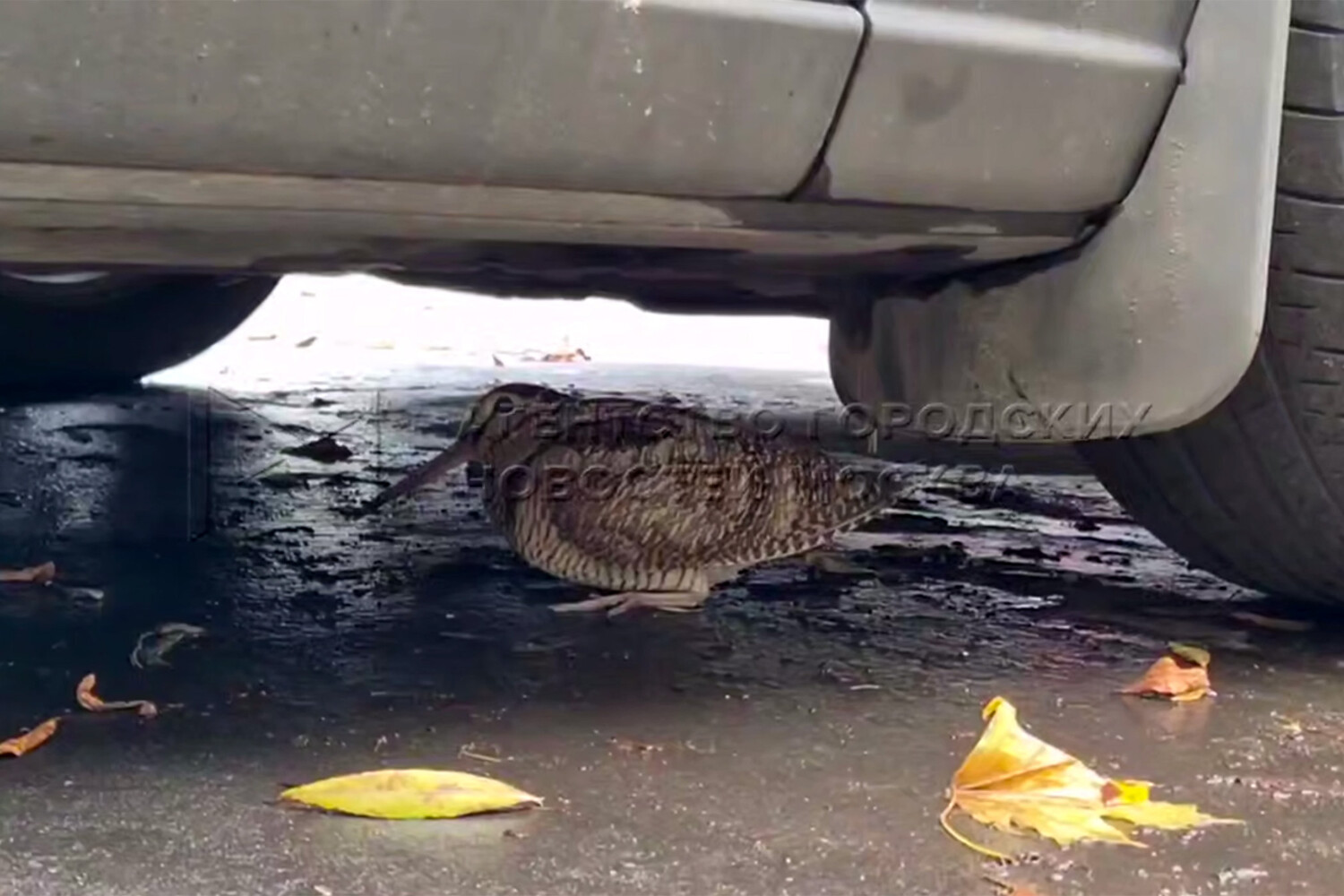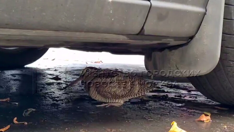 В Москве на видео сняли краснокнижного вальдшнепа, который забрался под авто