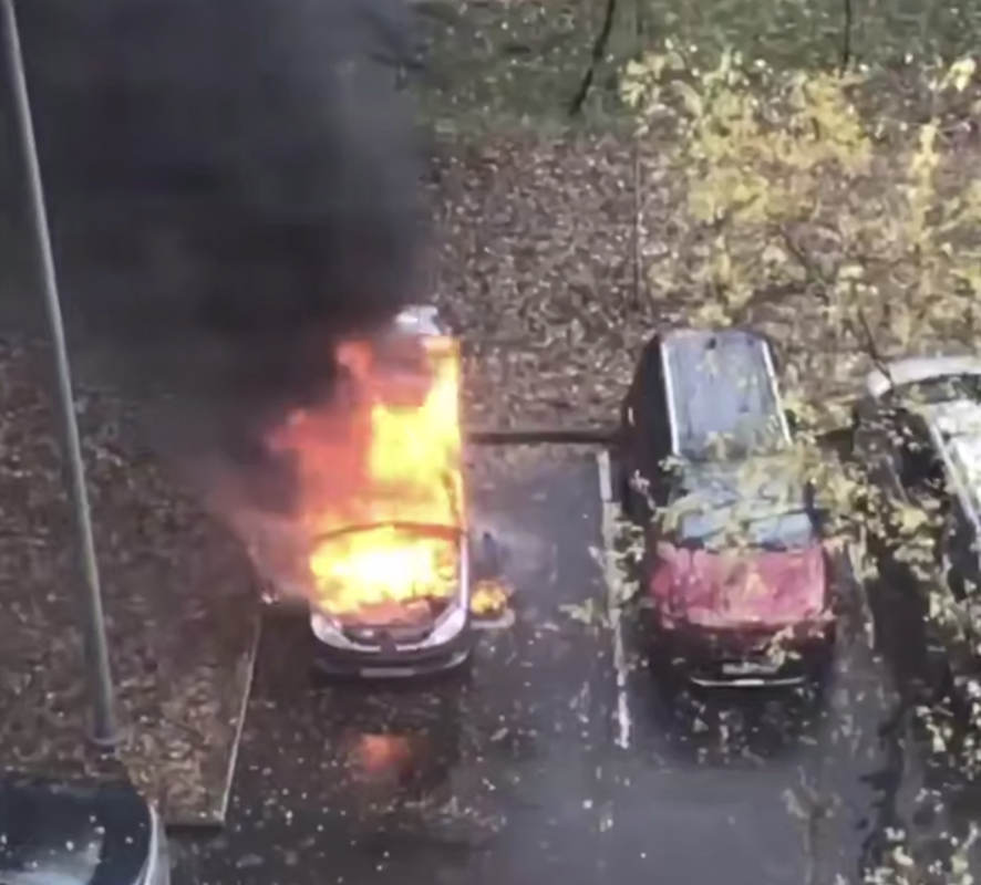 В Москве на видео попал вспыхнувший на парковке автомобиль