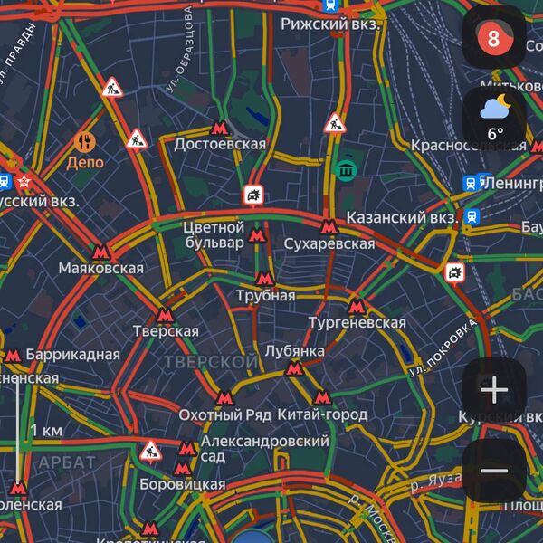 Судя по онлайн-картам, самые серьезные пробки наблюдаются в центре города.