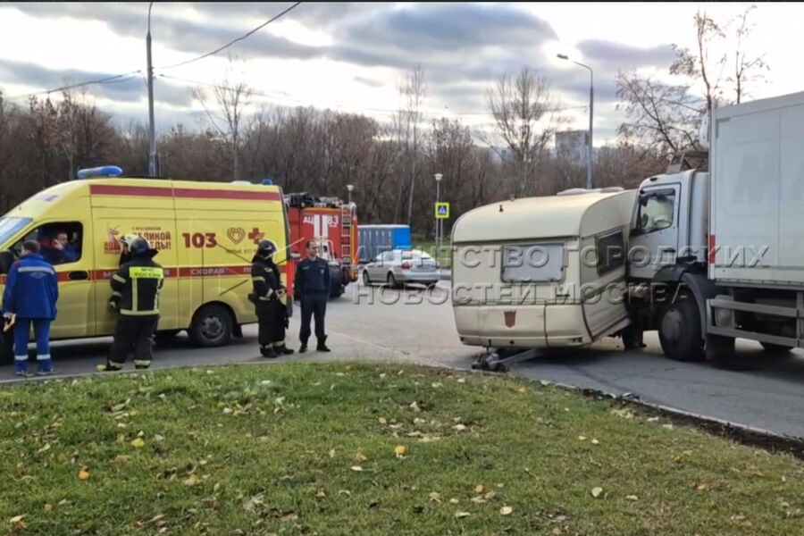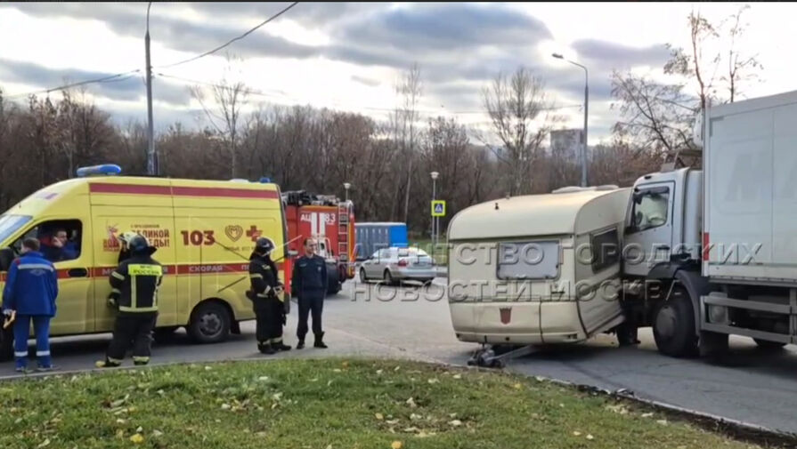 В Москве грузовик без водителя протаранил автодом Mercedes