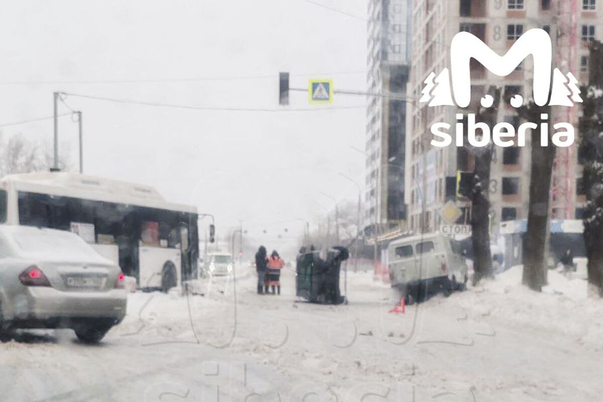 В Сибири автомобиль с человеком перевернулся в ДТП и попал на видео
