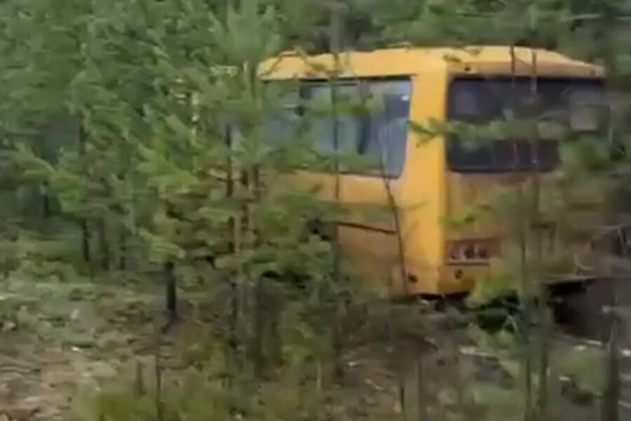 Судя по видео с канала, после съезда с дороги, автобус сбил несколько молодых деревьев и въехал в лес.