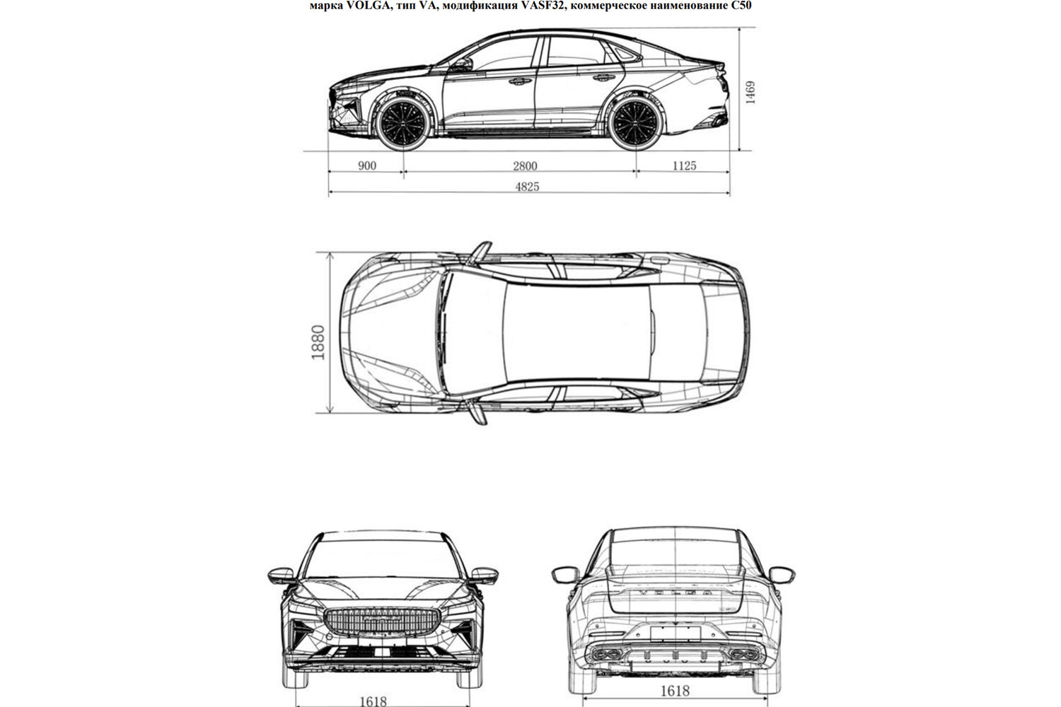 Согласно ОТТС, производителем Volga C50 значится компания «Нижегородские легковые автомобили». Длина седана — 4825 мм, ширина — 1880 мм, высота — 1469 мм, колесная база — 2800 мм. По габаритам автомобиль полностью совпадает с седаном Geely Preface.